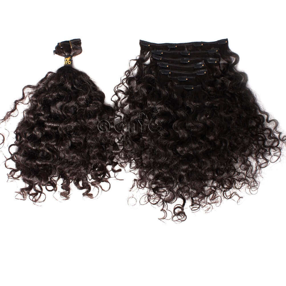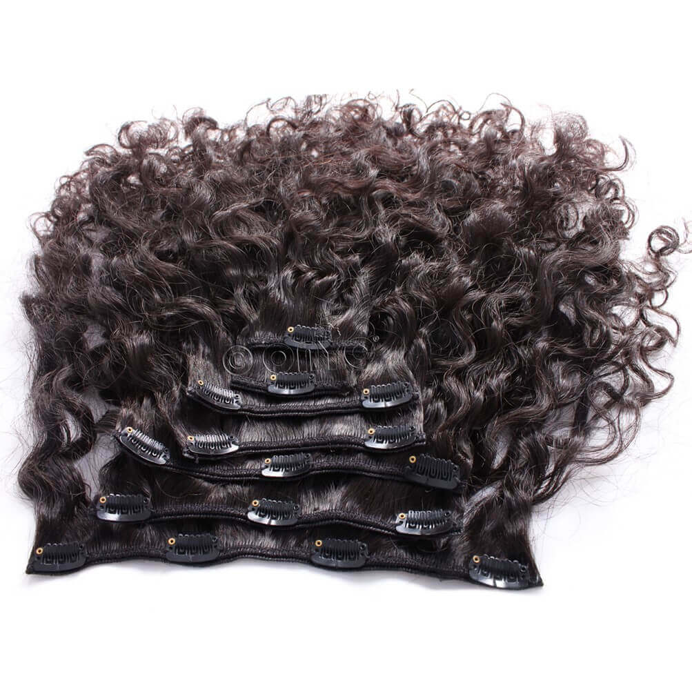 ONYC Hair 7 Piece Deep Curly Clip In Hair Extensions for 3B Hair texture is perfect for instant volume or length in minutes. These luscious curls can help our curly girls add volume to their own hair.