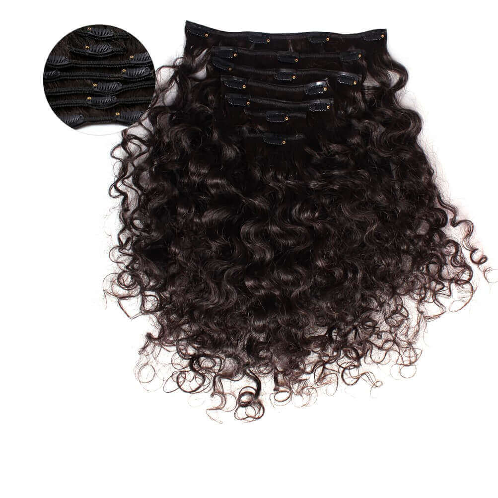 Instant glam in 5 minutes with 7 Piece Deep Curly Clip In Hair Extensions!