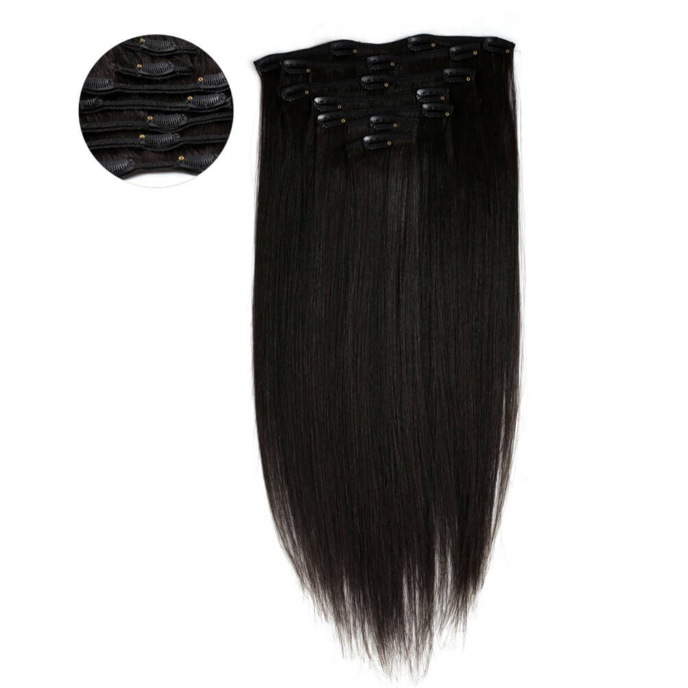 Straight Hair Clip In Light Relaxed Texture Clip-Weft Measurement: