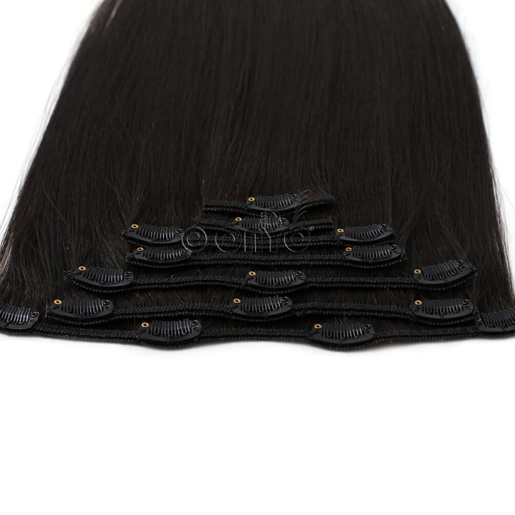ONYC clipin sets offer individual wefts of hair extensions that are attached to polymer-coated clips. The polymer clips are very comfortable and don’t pull out strands of hair when they are placed.
